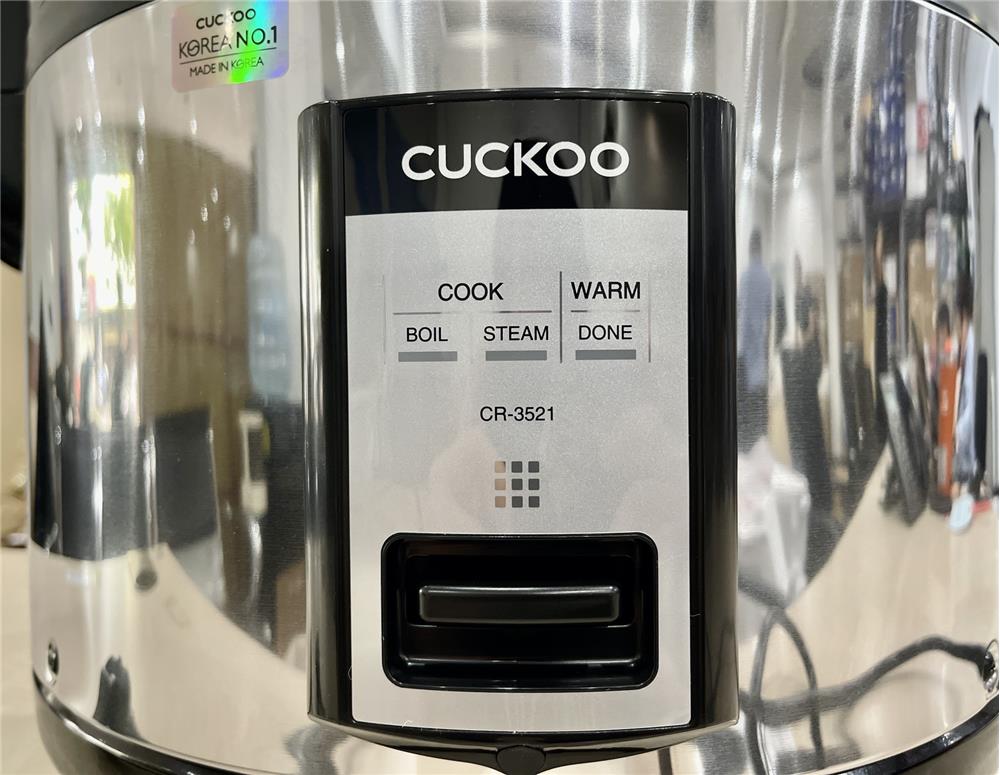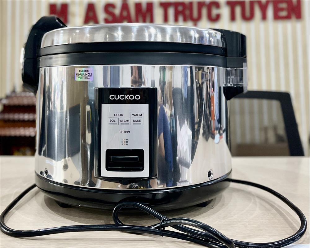 Cuckoo CR 3521S (hay Cuckoo CR-3521S) là chiếc nồi cơm điện công nghiệp mang thương hiệu nổi tiếng Cuckoo của Hàn Quốc. Nồi hoạt động với công suất lớn, lên tới 1.550W cùng hệ thống tỏa nhiệt 4 chiều giúp cơm chín đều, nhanh chóng và giữ nguyên được dưỡng chất trong hạt gạo.