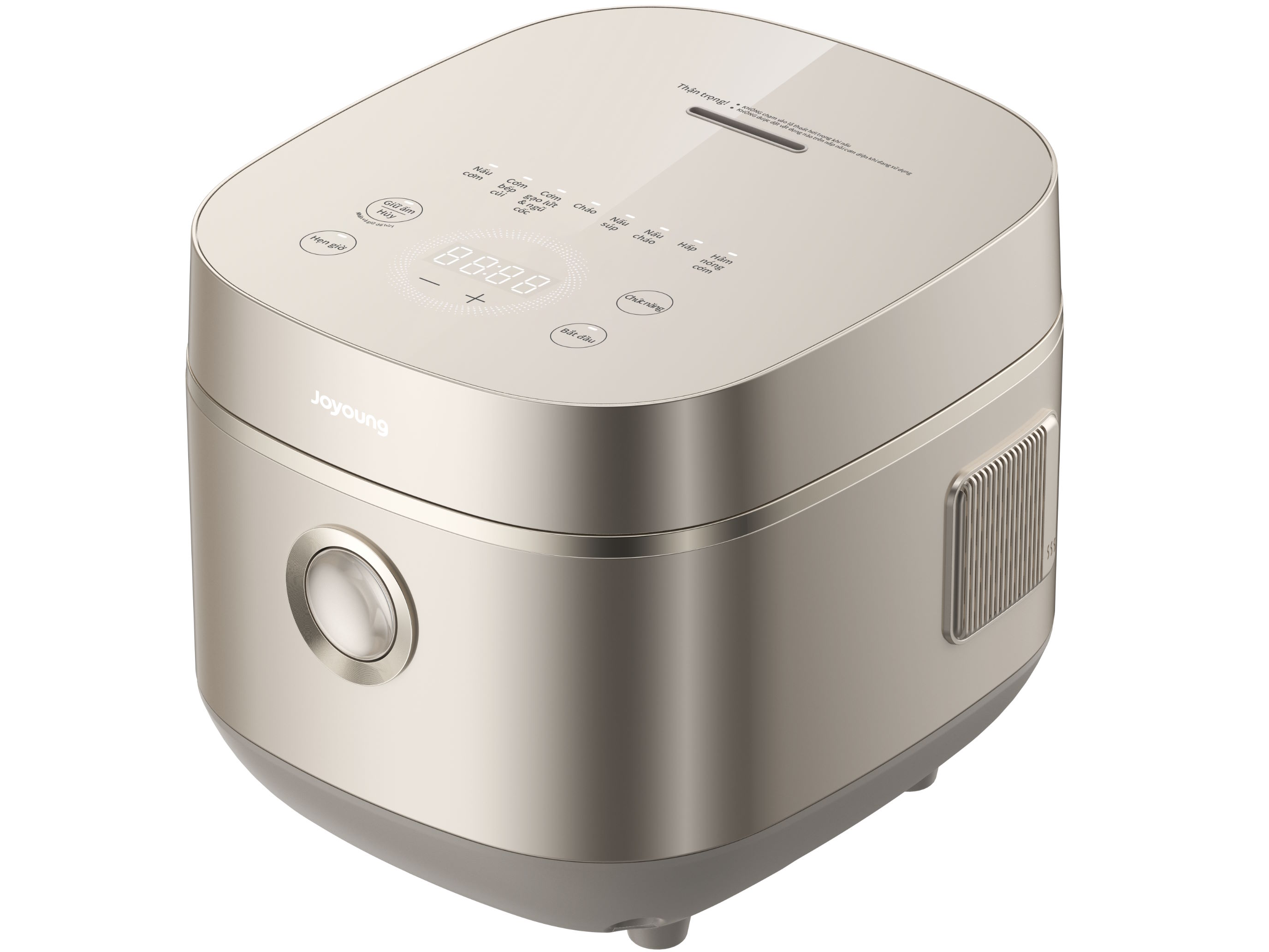 Nồi cơm điện tử Joyoung JNRC-502 được trang bị bảng điều khiển cảm ứng tiếng Việt trực quan, giúp người dùng dễ dàng lựa chọn chế độ nấu phù hợp. Các biểu tượng hiển thị rõ ràng, thao tác đơn giản, phù hợp với mọi đối tượng sử dụng trong gia đình.