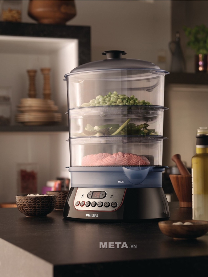 Nồi hấp điện Philips HD9140 mang đến nhiều món hấp bổ dưỡng cho cả gia đình thưởng thức.