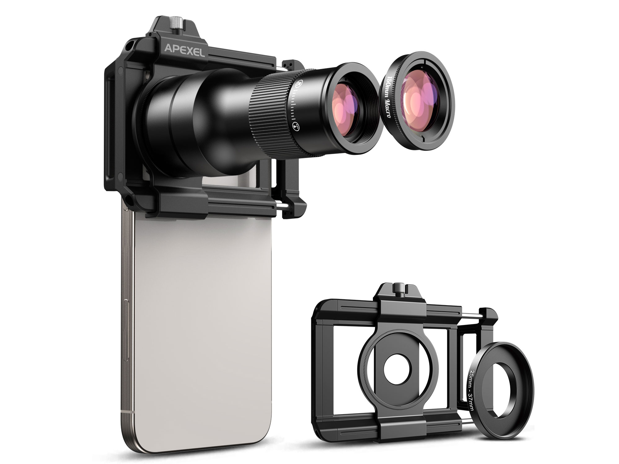 Ống kính Apexel APL-TM6 tích hợp ống kính Telephoto 6X và ống kính Macro 150mm giúp bạn dễ dàng chuyển đổi giữa chụp xa và chụp gần.