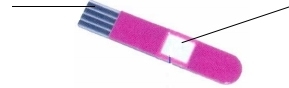 Khu vực để lấy mẫu máu hoặc dung dịch thử. Khi nhỏ máu hoặc dung dịch thử vào thì nó sẽ tự động chảy vào khu vực cảm ứng. |