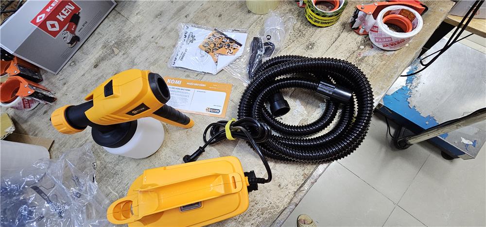 - Máy phun sơn thiết kế sạng cầm tay nhỏ gọn, trang bị công suất đầu vào định mức là 800W.