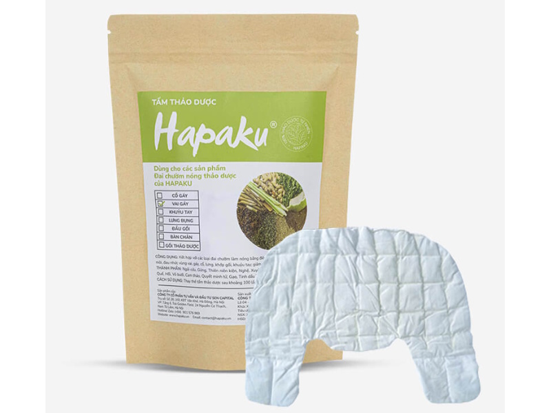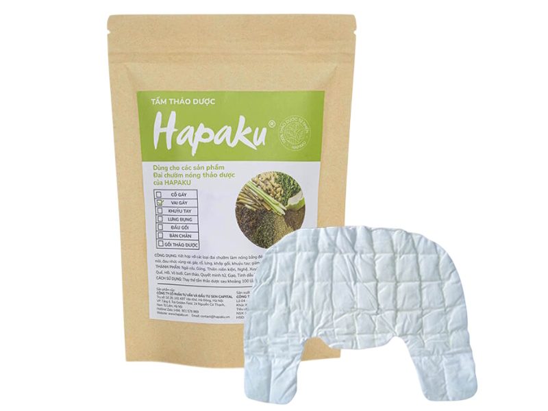 Tấm thảo dược Hapaku được bào chế từ hơn 10 loại thảo dược quý tại Việt Nam như ngải cứu, nghệ, gừng, xuyên khung, quế, hồi... Các nguyên liệu được chọn lọc, sơ chế và phối trộn theo tỷ lệ riêng, mang đến hiệu quả thư giãn, giảm đau, thông kinh lạc. Đặc biệt, có bổ sung tinh dầu tràm giúp làm ấm cơ thể, hỗ trợ kháng khuẩn và chống cảm lạnh.