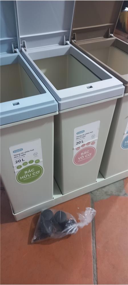 Đồng thời thông qua thùng rác 3 ngăn này cũng sẽ hình thành cho người dùng thói quen phân loại rác. Mỗi một thùng sẽ có nắp màu sắc nhau giúp bạn phân biệt dễ dàng: xanh nhạt - ghi sữa - nâu cafe.
