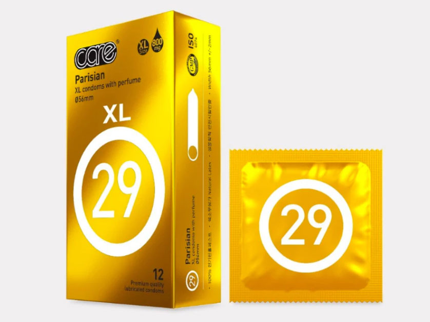 Bao cao su Big Size Care 29 có đường kính 56mm, ôm khít, nhiều gel, có hương nước hoa quý phái, gel bôi trơn gốc nước an toàn, không gây dị ứng.