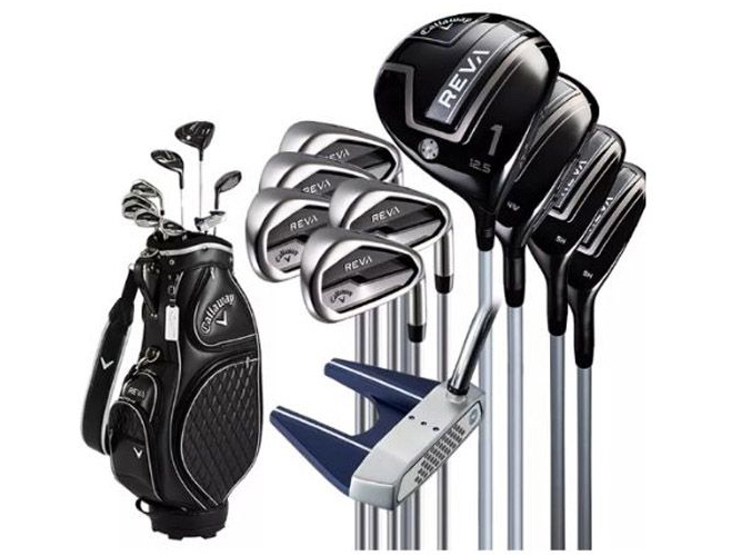 Bộ gậy golf fullset Callaway REVA Lady dùng cho nữ giới, được làm từ chất liệu Titan và thép không gỉ, gồm 9 gậy golf, 1 túi golf và đầu chụp bảo vệ gậy.