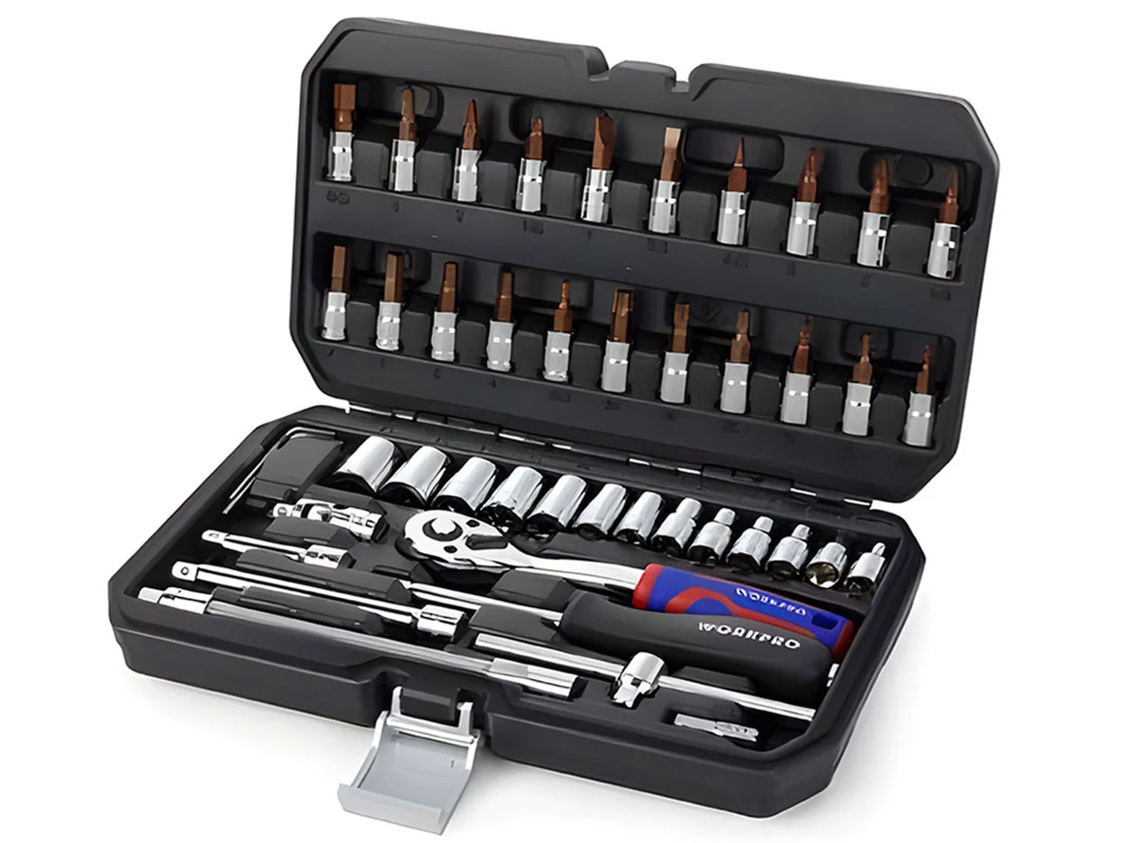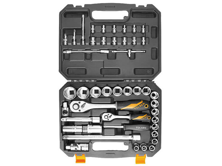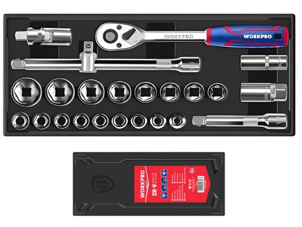 Bộ tuýp 24 chi tiết Stanley STMT74183-8 có hộp đựng, các chi tiết làm từ thép CR-V, gồm 18 đầu tuýp, cần tự động 1/2", cần lắc léo và cần nối.