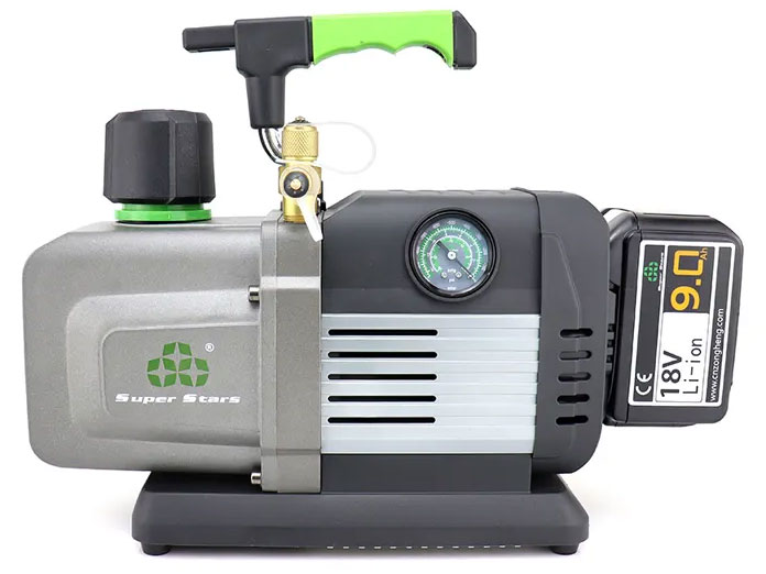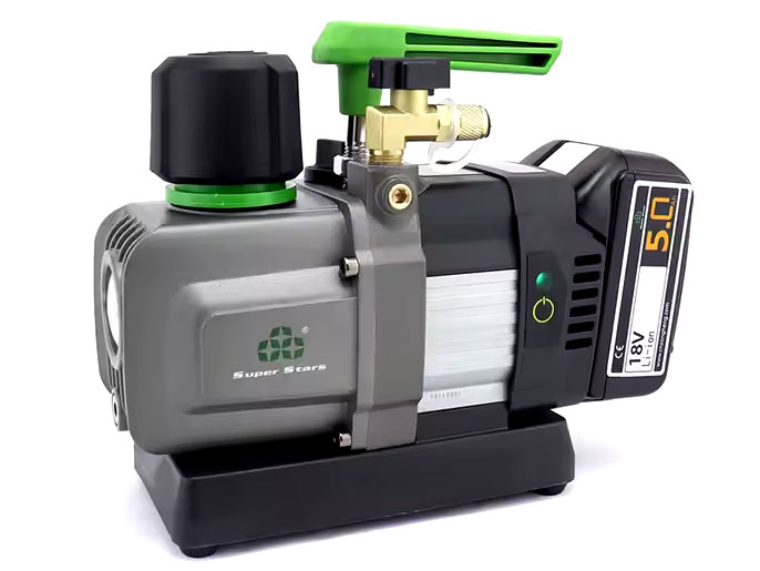 Máy bơm chân không Super Stars ST-2BM dùng điện, có tốc độ hút 2.5 CFM, động cơ 2 cấp giúp đạt độ sâu chân không ổn định và nhanh chóng.