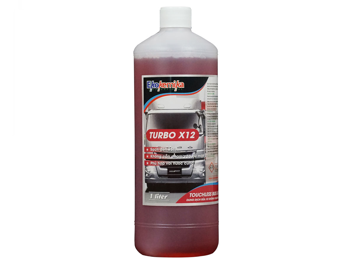 Nước rửa xe không chạm Ekokemika Turbo X12 dùng với máy rửa xe áp lực trên 130 bar giúp xịt rửa xe khách, xe bus, xe ô tô tải, xe công trình cực kỳ sạch.