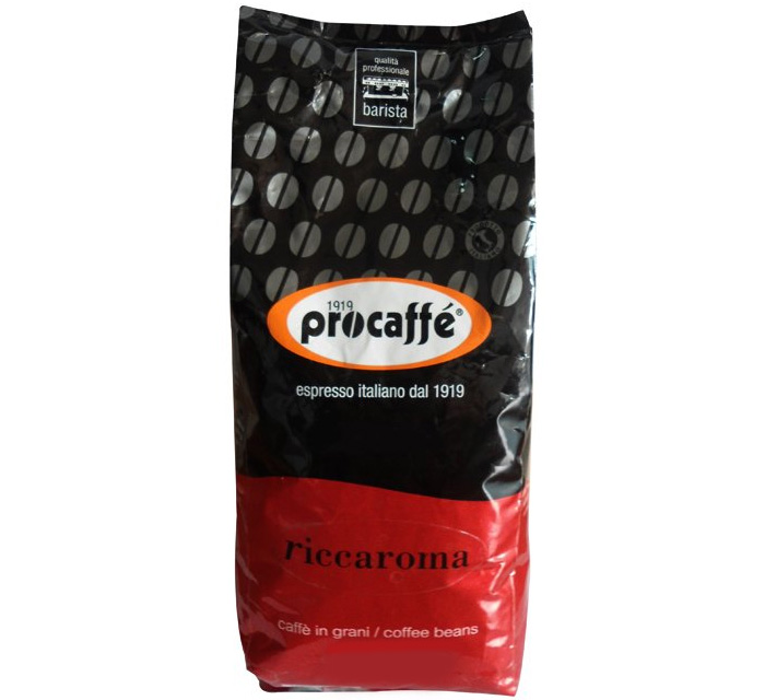 Cà phê hạt Procaffe Riccaroma được đóng gói dạng túi, là cà phê sạch được sản xuất theo dây chuyền đạt chất lượng cao, đảm bảo tiêu chuẩn. Procaffe Riccaroma giúp người thưởng thức bị quyến luyến bởi hậu vị có dấu ấn hài hòa giữa chút sô cô la, chút trái cây và bánh mỳ nướng.