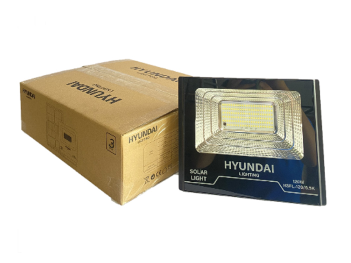 Đèn pha năng lượng mặt trời Hyundai HSFL-120/6.5K có tính năng chống sét, tuổi thọ đèn từ 3 - 5 năm, tuổi thọ tấm pin NLMT từ 10 - 12 năm.
