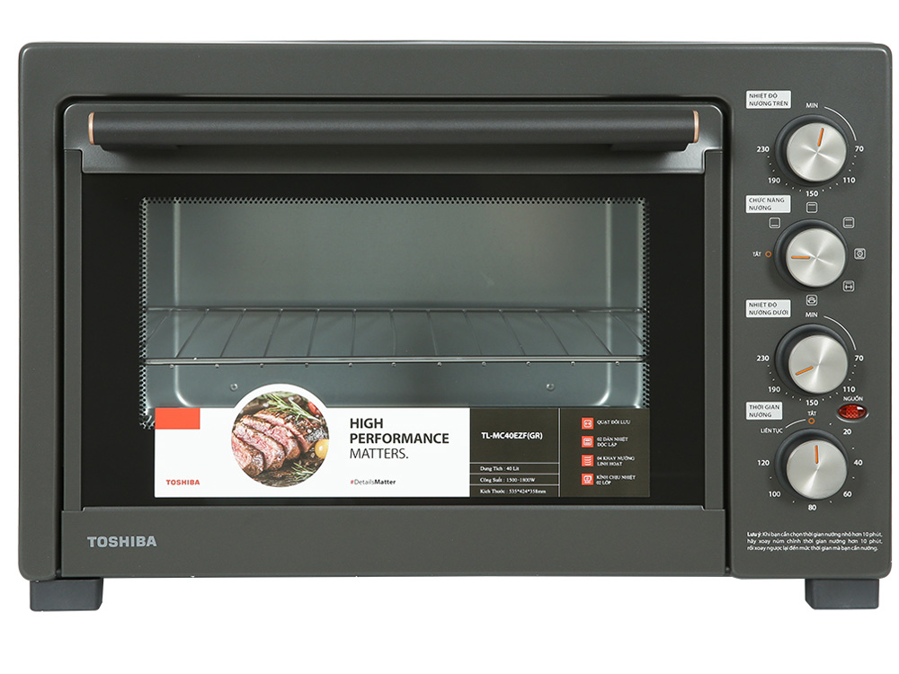 - Chế độ nướngNướng trên có quạt đối lưu, Nướng trên dưới có nướng xiên quay và quạt đối lưu, Nướng trên dưới có quạt đối lưu