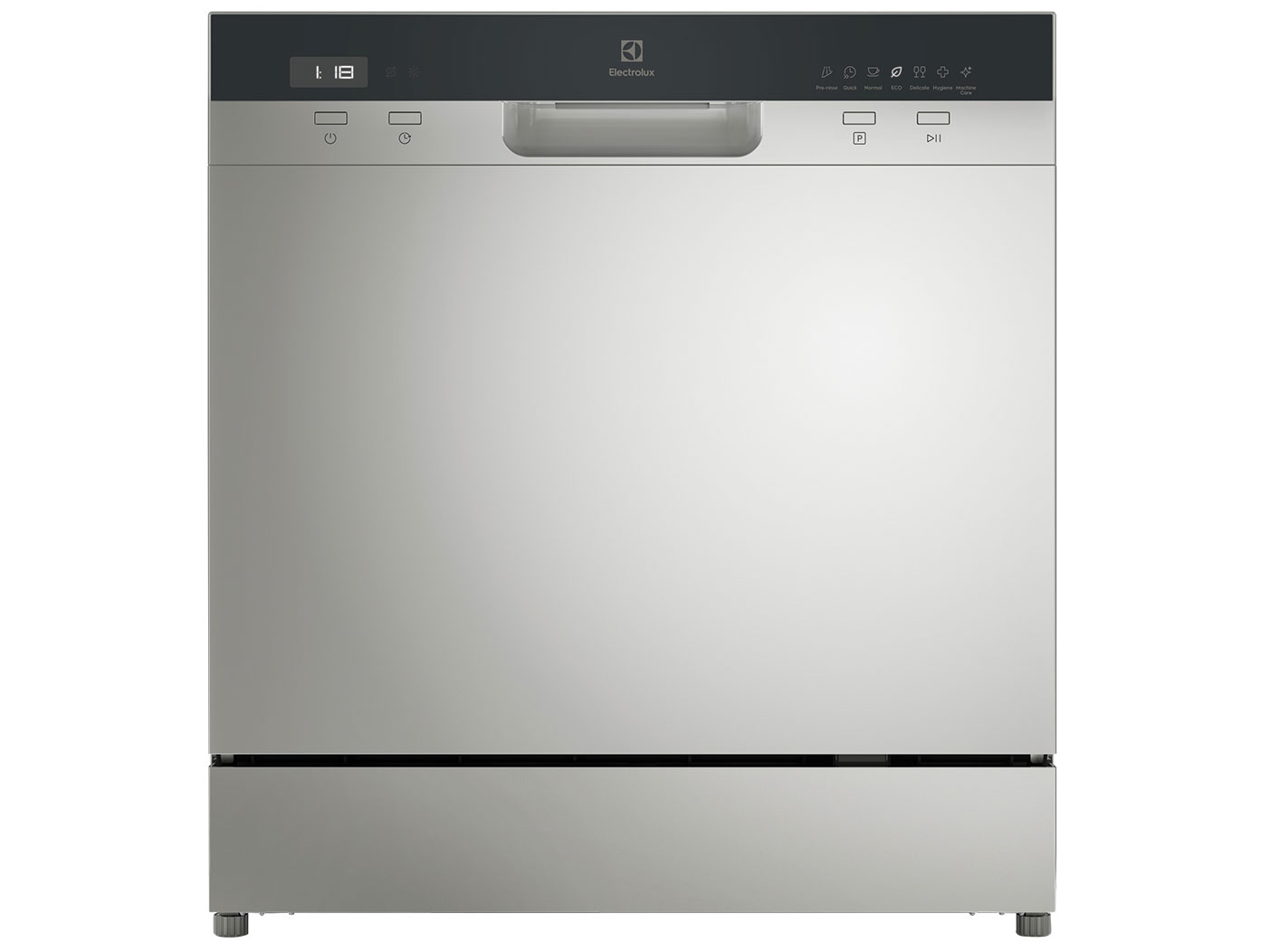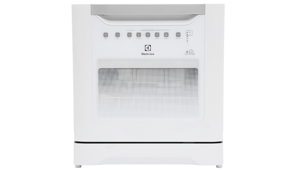 Máy rửa bát mini Electrolux ESF6010BW 1480W có thể rửa 8 bộ đồ ăn châu Âu thích hợp cho gia đình 2-3 người, vận hành êm ái, độ ồn thấp chỉ 60 dB (như nghe nhạc nhẹ).