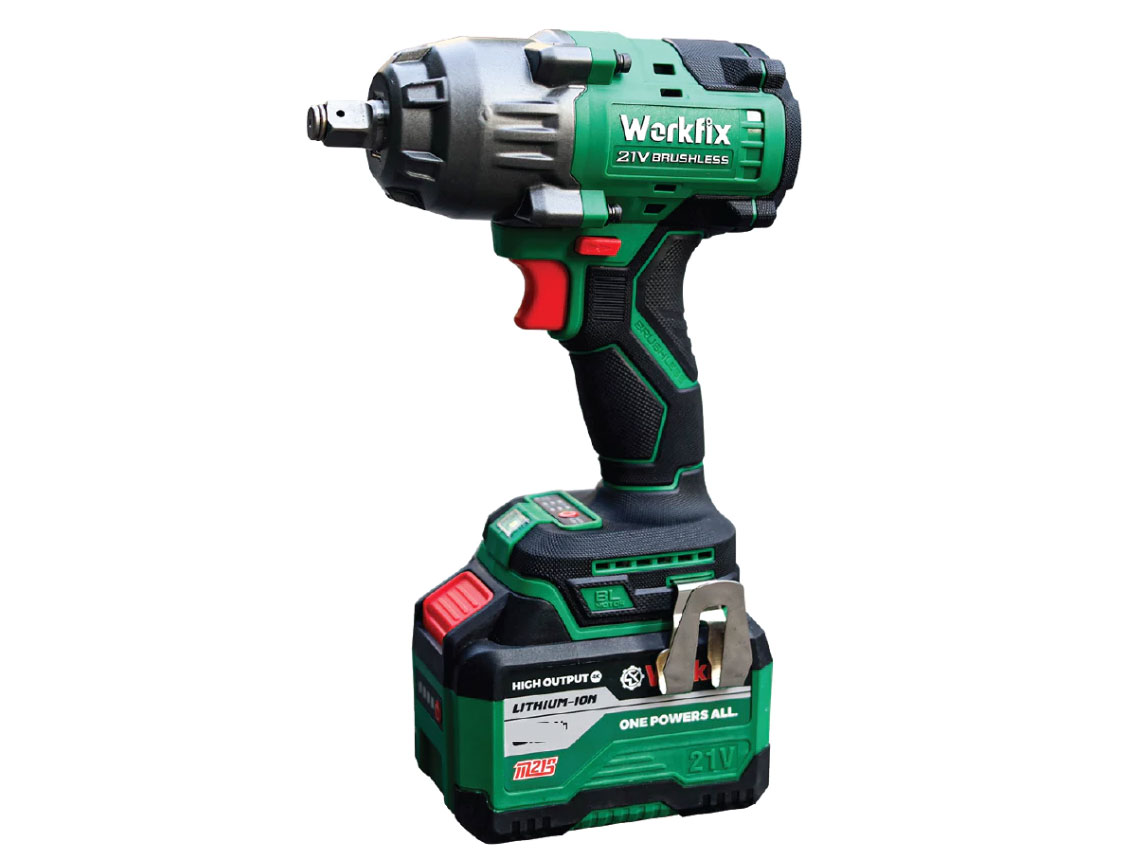 Máy bắn siết bu lông Workfix WF-IW2100N có lực siết 2100Nm, động cơ không chổi than, pin 21V 6.0Ah, sạc nhanh 1 giờ, đảm bảo tháo mở bu lông nhanh chóng và bền bỉ.