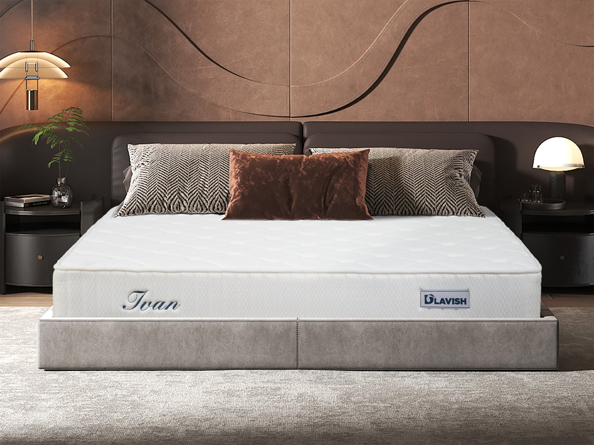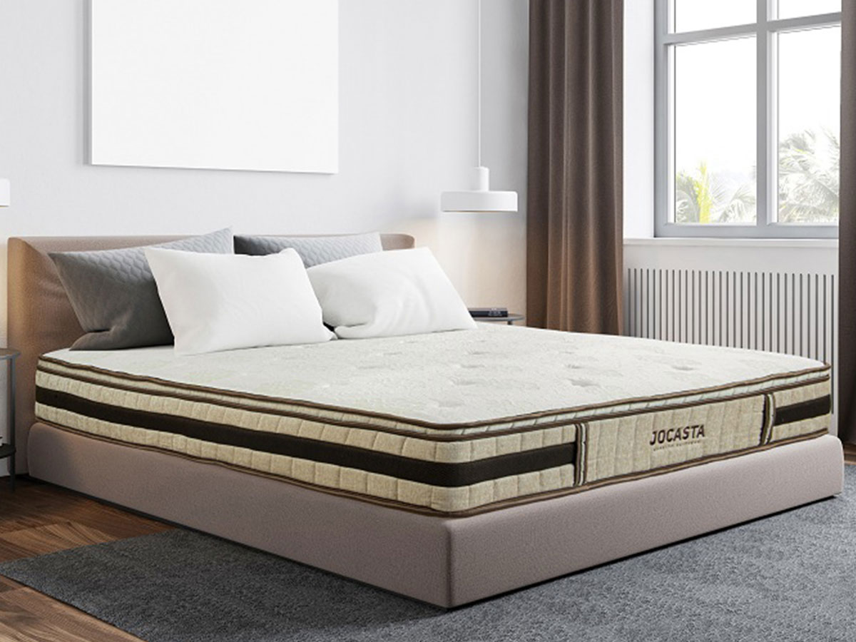 Đệm lò xo Hanvico Jocasta với độ dày 25cm, lò xo túi độc lập, công nghệ kháng khuẩn nano, vải chống cháy, cao su latex thiên nhiên, mang lại giấc ngủ êm ái, an toàn.