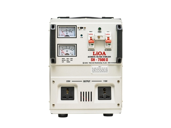 Ổn áp 1 pha Lioa 5KVA SH 5000II có dải điện áp vào 130V - 250V, mô tơ dây đồng siêu bền, có chức năng bảo vệ quá tải, quá áp và đóng ngắt điện tự động.