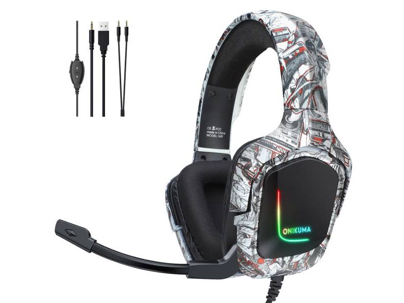 Tai nghe chơi game Onikuma K20 có đèn LED đổi màu, nút bịt tai bằng da mềm mại, thoải mái, thoáng khí, trình điều khiển neodymium từ tính 40mm cho âm trầm mạnh mẽ.