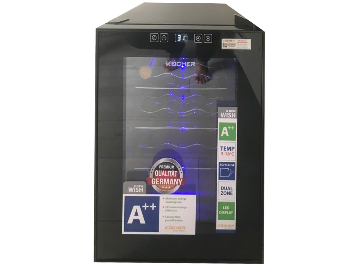 Tủ rượu KCWEU-3338 với thiết kế SIDE BY SIDE sang trọng, dung tích 120L, bảo quản 38 chai rượu vang, 350 điếu cigar, áp dụng công nghệ làm lạnh tiên tiến.