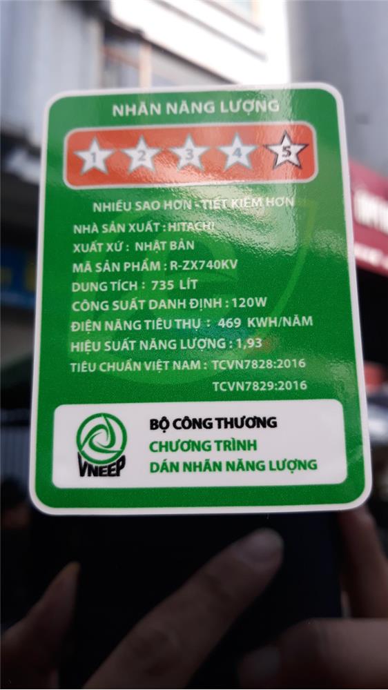 Nhờ tất cả những công nghệ trên mà tủ lạnh Hitachi R-ZX740KV(X) đạt nhãn năng lượng 5 sao, tiêu thụ 469 số điện 1 năm, tương đương khoảng 1,3 số điện/ngày. Với dung tích lớn đến 735 lít thì đây là mức sử dụng điện cực kỳ tiết kiệm và tối ưu.