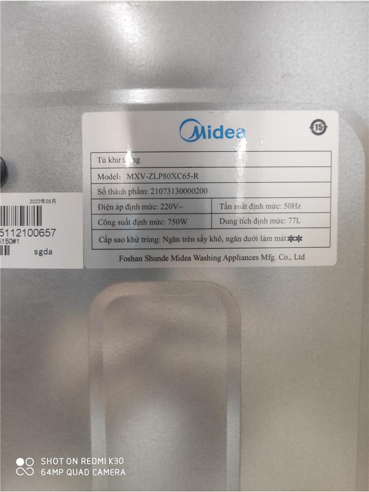 Đánh giá Tủ sấy chén bát diệt khuẩn Midea MXV-ZLP80XC65-R