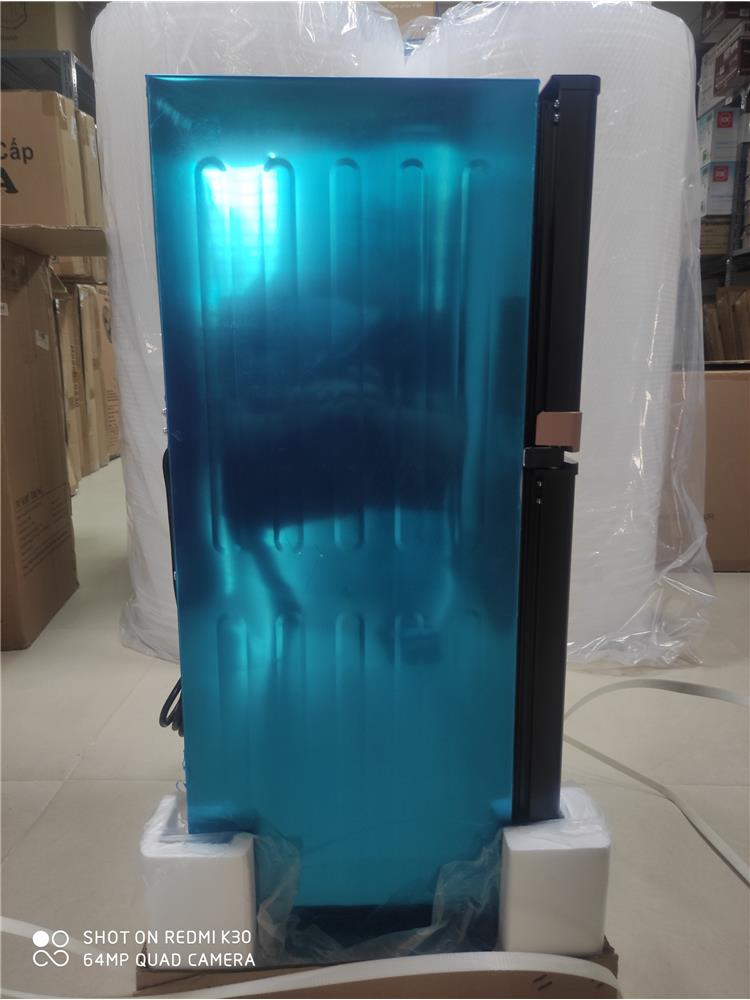 Máy được làm bằng inox 304 bền chắc. Mặt trước làm bằng kính chịu lực sáng bóng, trang nhã tôn lên vẻ đẹp cho không gian lắp đặt.