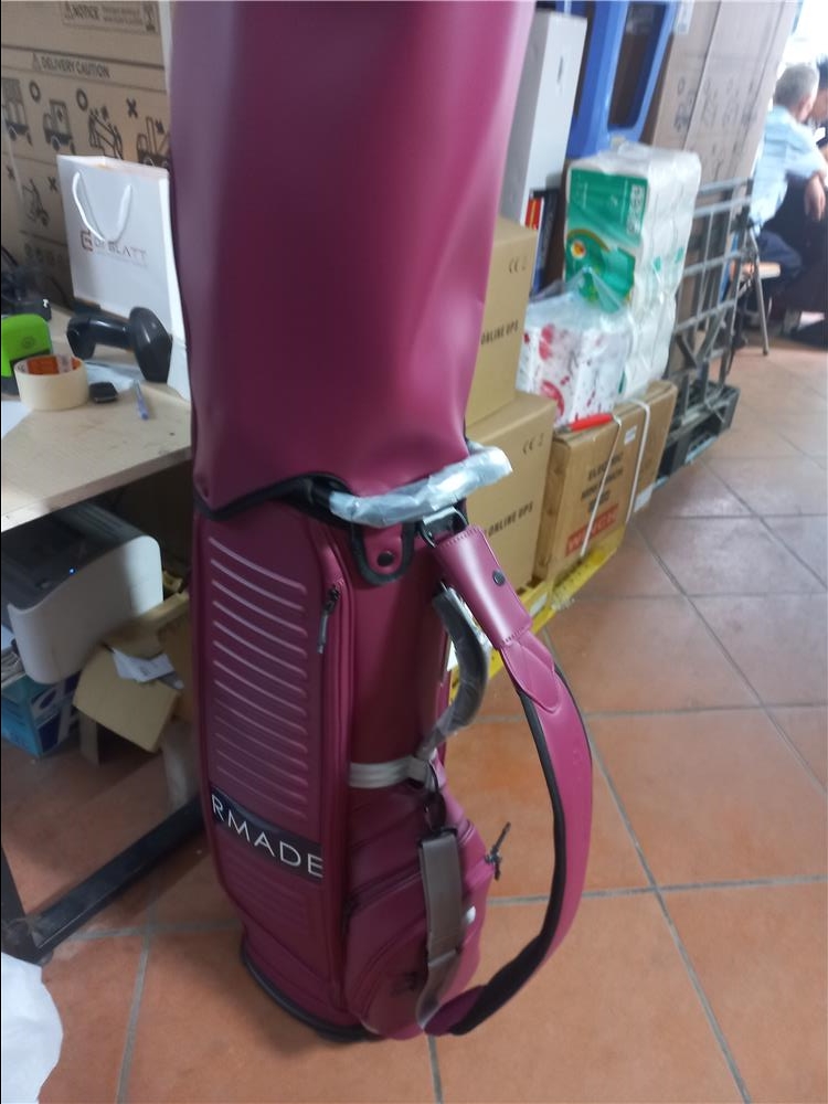 Form túi đứng, cứng cáp, không bị nghiêng đổ. Túi golf được làm từ da tổng hợp chống thấm nước, bền, dễ vệ sinh, đường may bền chắc.