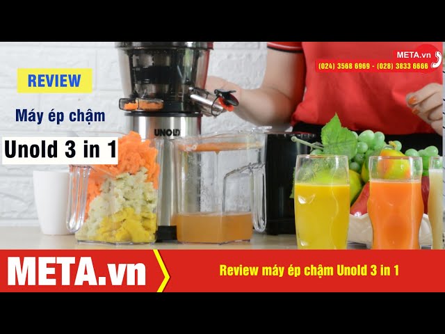 Máy ép chậm Unold 3 in 1 nước ép từ máy ép tốc độ chậm đậm đặc hơn so với máy ép thông thường, không bị lẫn nhiều bã, giữ lại đến hơn 90% lượng vitamin, dinh dưỡng có trong thực phẩm (gấp hơn 5 lần máy ép thường).