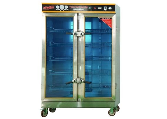 Tủ sấy bát công nghiệp 2 cánh 5 khay NewSun có công suất động cơ là 2400W giúp gia nhiệt nhanh, có dung tích 930 lít, nhiệt độ sấy chỉnh từ 30 - 80 độ C, thời gian sấy từ 0 - 60 phút.