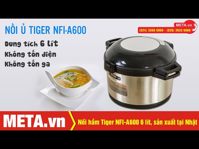 Nồi hầm Tiger NFI-A600 6 lít gồm 1 nồi ủ, 1 nồi inox. Nồi inox an toàn cho sưc khỏe. Dung tích 6 lít, giữ kín hơi bằng môi trường chân không.
