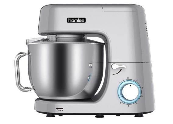 Máy nhào bột Homlee SM-1508 với công suất 1800W, dung tích thố 7.2L, khả năng trộn bột, đánh kem, trứng và làm chả giò hiệu quả.
