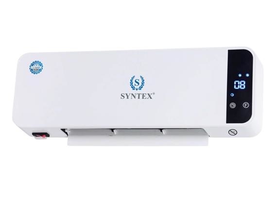 Máy sưởi gốm treo tường Syntex SG2268 với phạm vi nhiệt độ từ 10°C đến 49°C, có chế độ cài đặt thời gian thông minh và tự ngắt khi quá nhiệt.