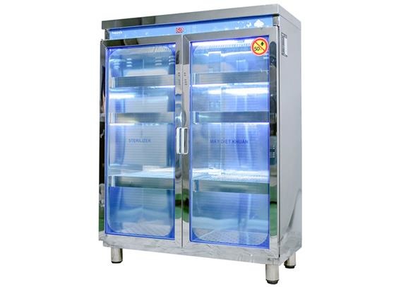 Tủ tiệt trùng bát đĩa bằng tia UV và sấy khô HAPPYS HPS-104C có khả năng sấy được 280 ly, khử trùng bằng 4 đèn UV.
