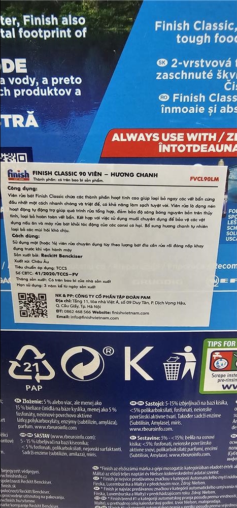 Viên rửa bát Finish Finish Classic 90 viên/hộp có hướng dẫn sử dụng chi tiết phía sau