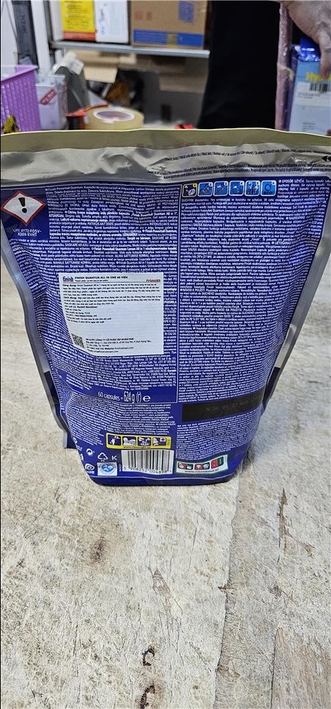 Viên rửa bát Finish Quantum all in 1 60 viên khi sử dụng không phải xé bỏ lớp bóng vì nó có lớp màng tự tan, chỉ cần lấy ra một viên rồi đặt vào khay chứa của máy rửa bát, sau đó chọn chương trình rửa phù hợp rồi ấn khởi động máy.