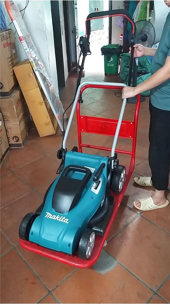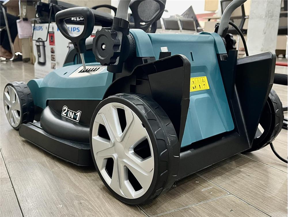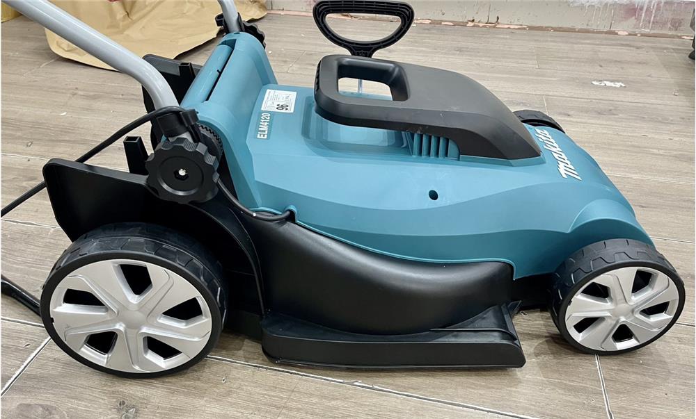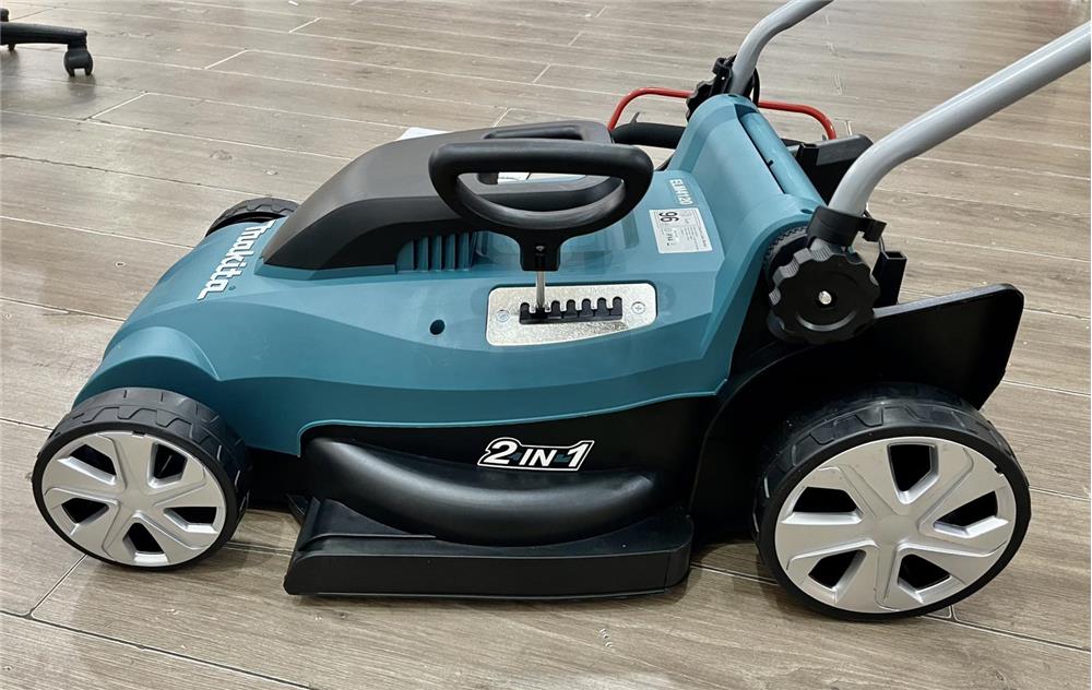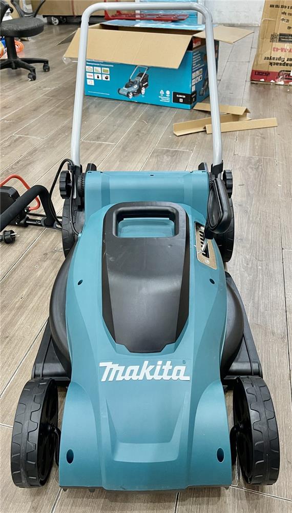 - Chiếc máy cắt cỏ chạy điện Makita này sở hữu thiết kế chắc chắn với tay cầm, bánh xe thuận tiện cho việc di chuyển.