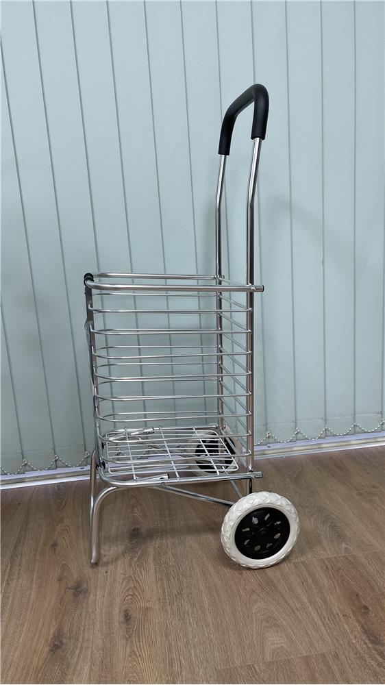 Xe kéo có thêm phần chân đế giúp tạo sự vững chắc khi để thực phẩm vào trong giỏ