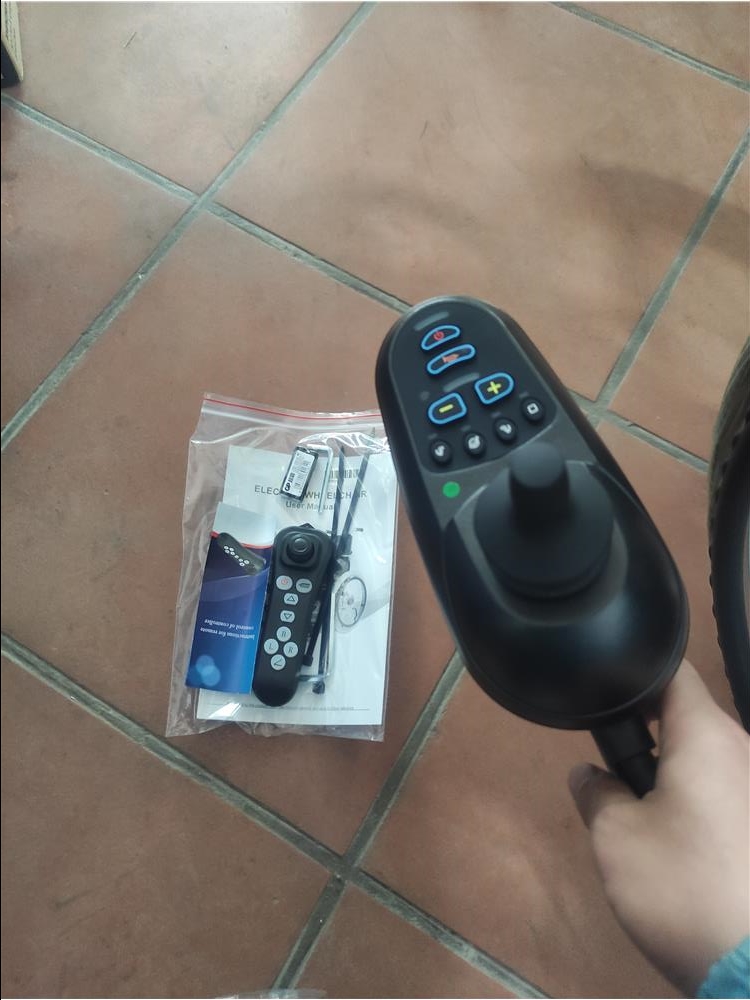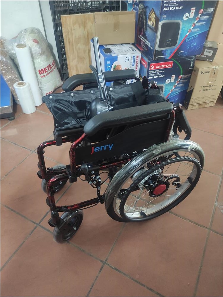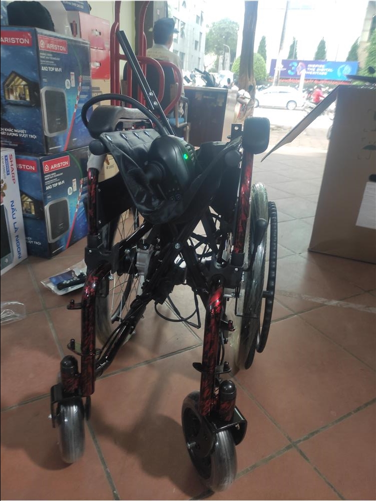 Xe lăn có cần điều khiển điều hướng giúp người dùng có thể tự mình di chuyển dễ dàng với tốc độ 6 - 7 km/h.